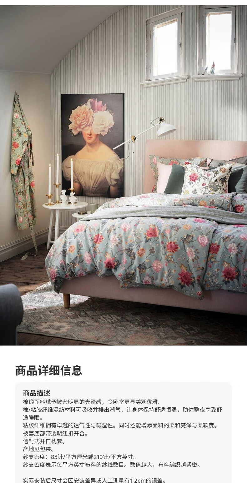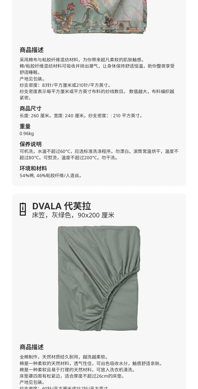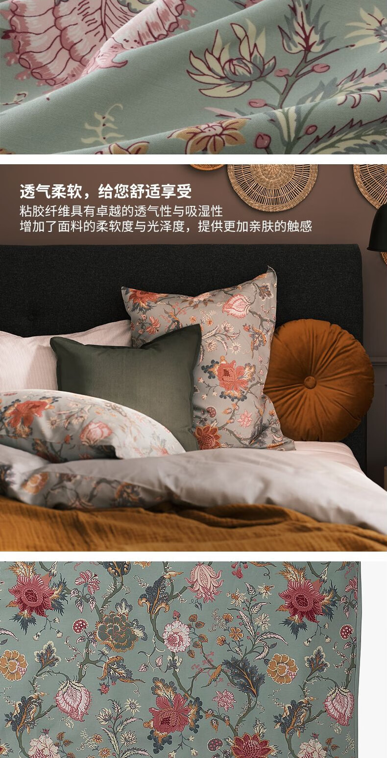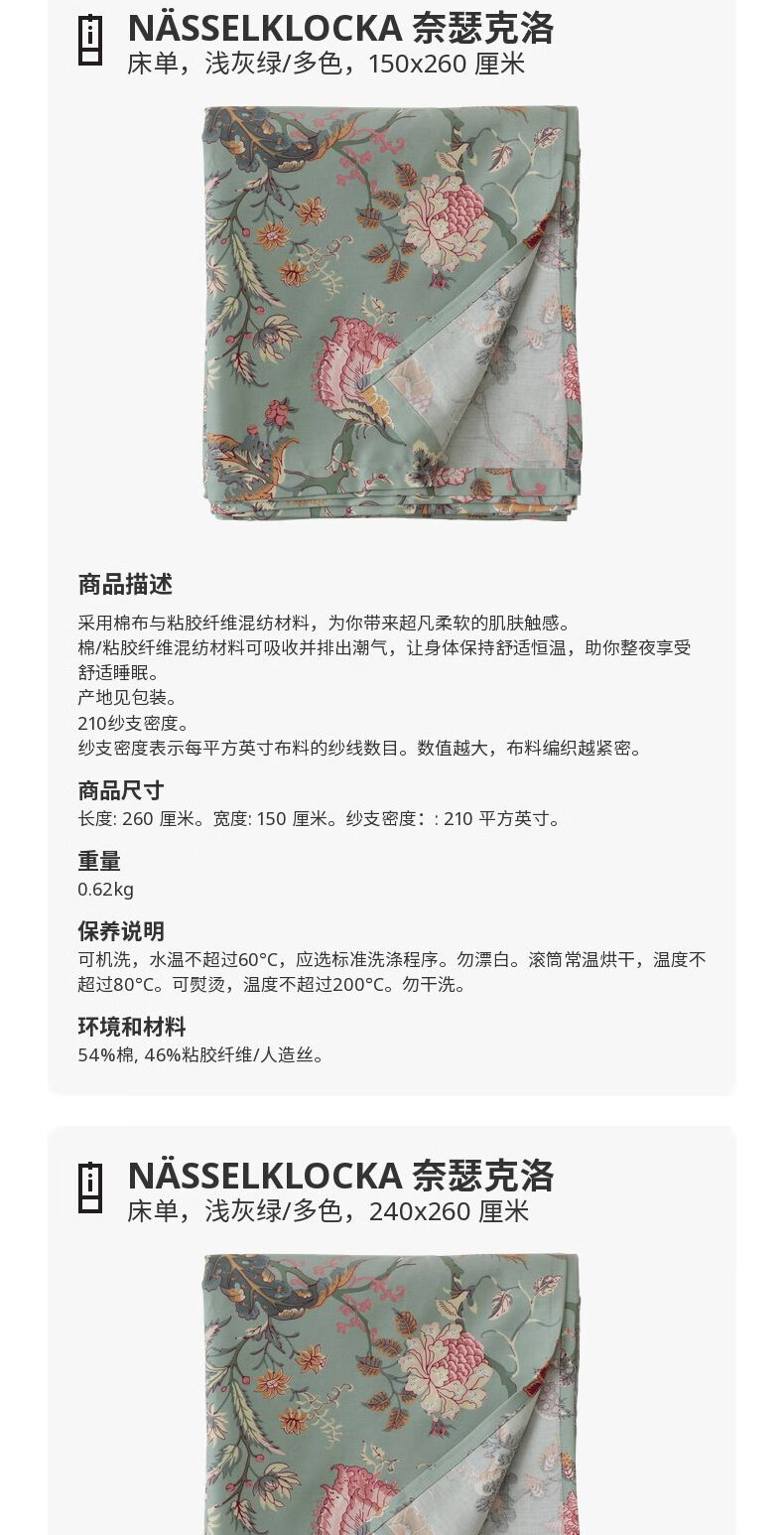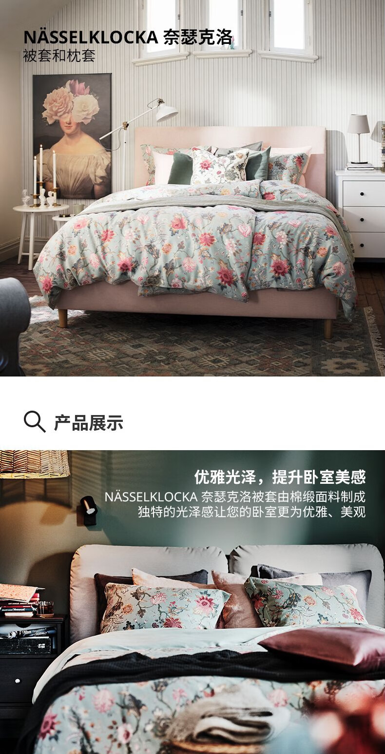 宜家(IKEA)【新品】NASSELKLOCKA奈瑟克洛被套和枕套多件套可机洗 多色浅灰绿被套和2枕套200X230cm