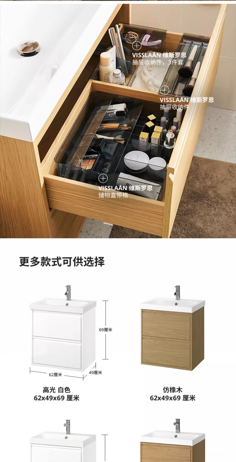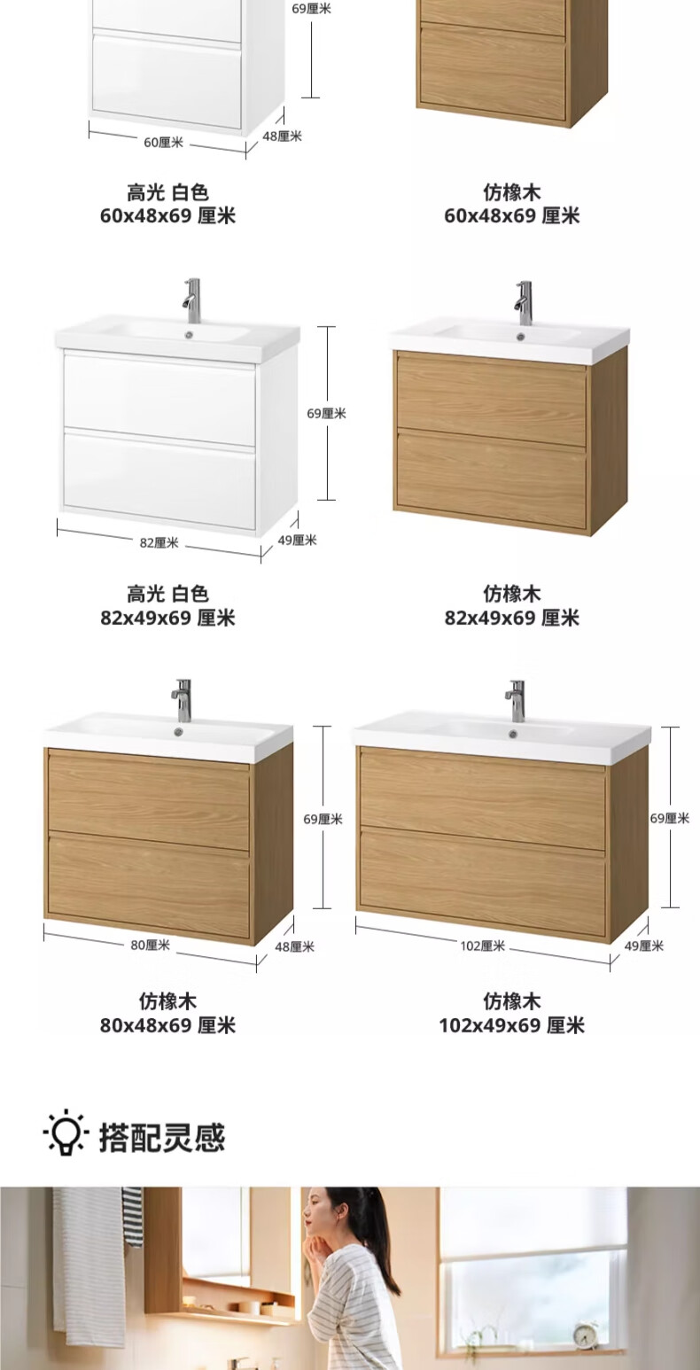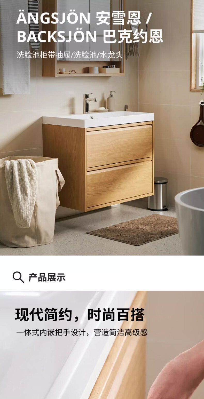 宜家(IKEA)ANGSJON安雪恩脸池柜卫生间浴室柜悬挂式洗漱台阳台洗脸盆柜 高光 白色82x49x69cm