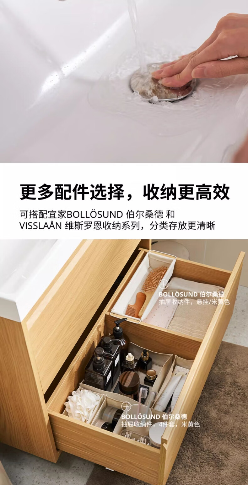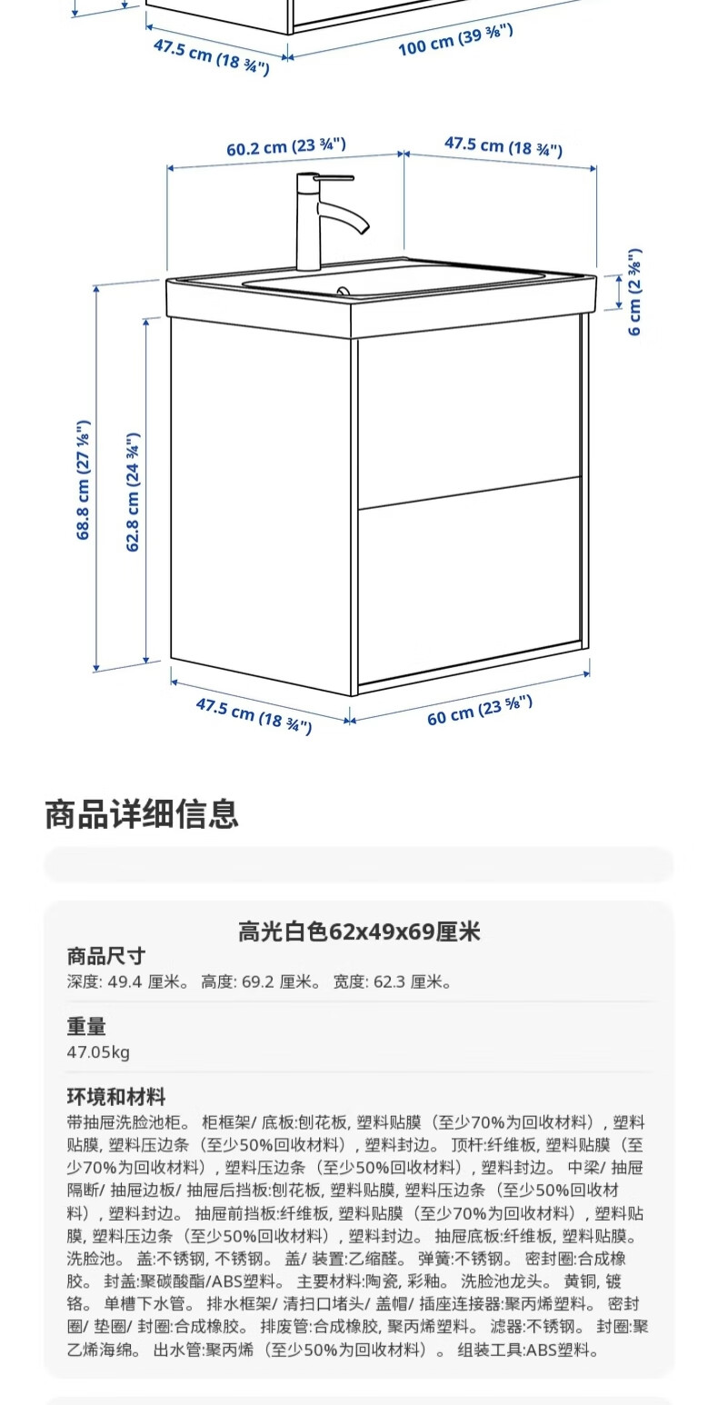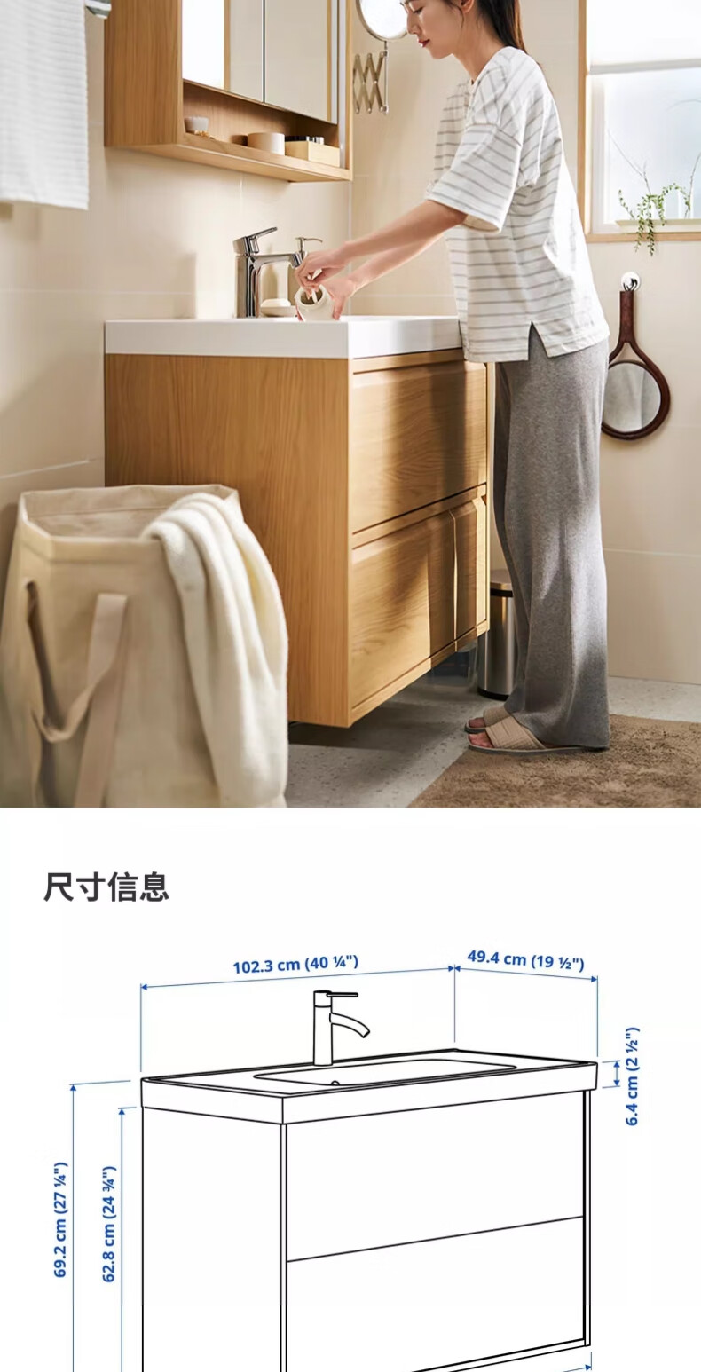 宜家(IKEA)ANGSJON安雪恩脸池柜卫生间浴室柜悬挂式洗漱台阳台洗脸盆柜 高光 白色82x49x69cm