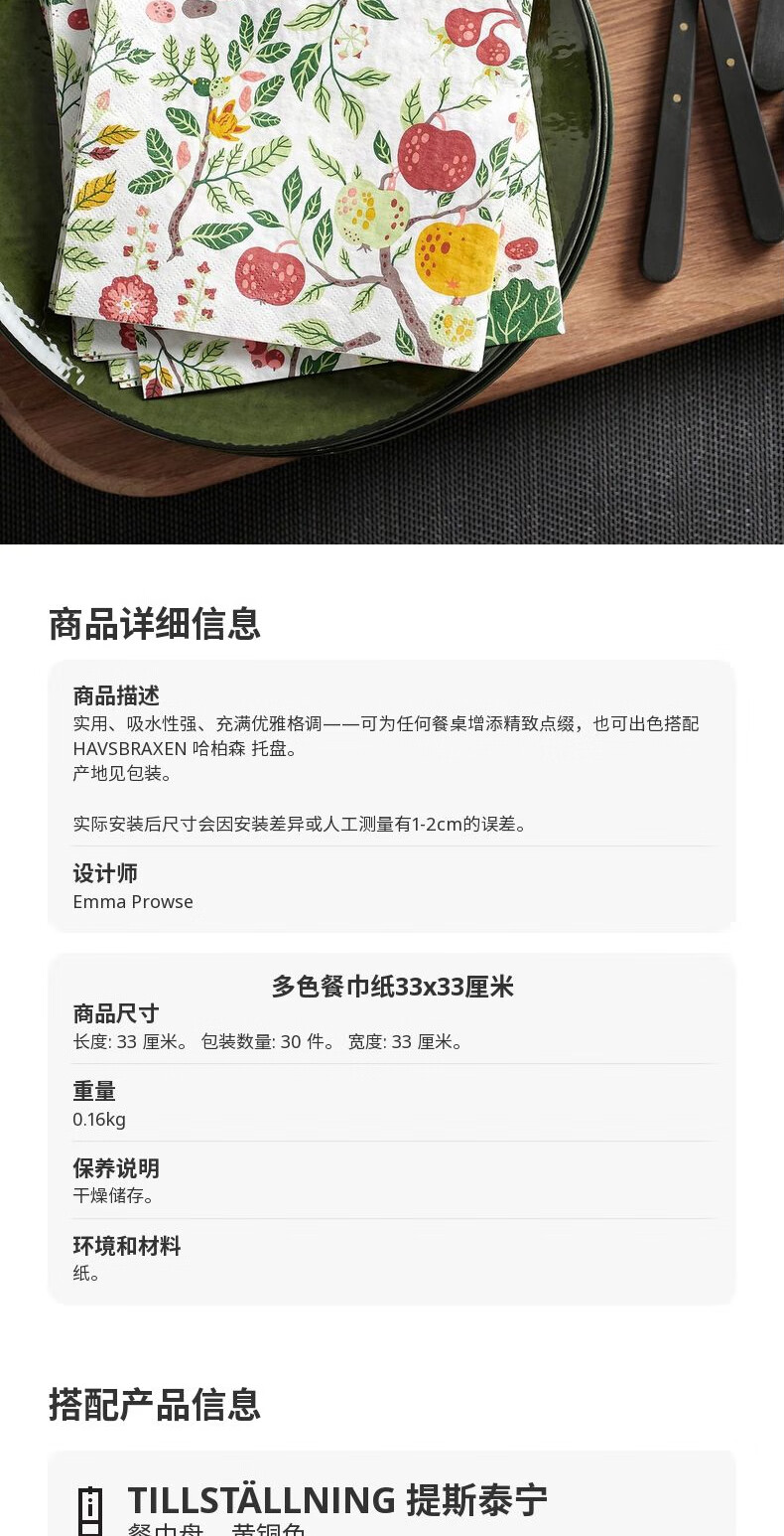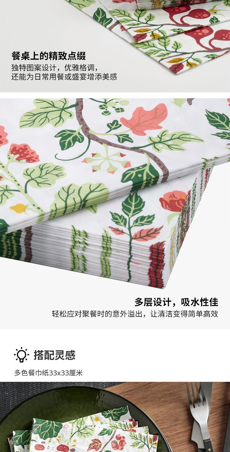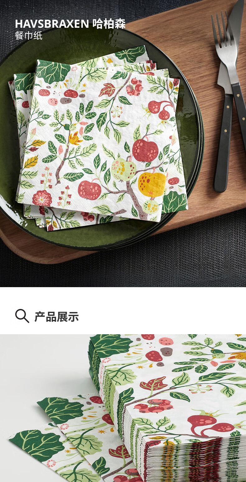 宜家(IKEA)【新品】HAVSBRAXEN哈柏森餐巾纸手帕纸卫生纸餐厅家用 多色餐巾纸33x33cm