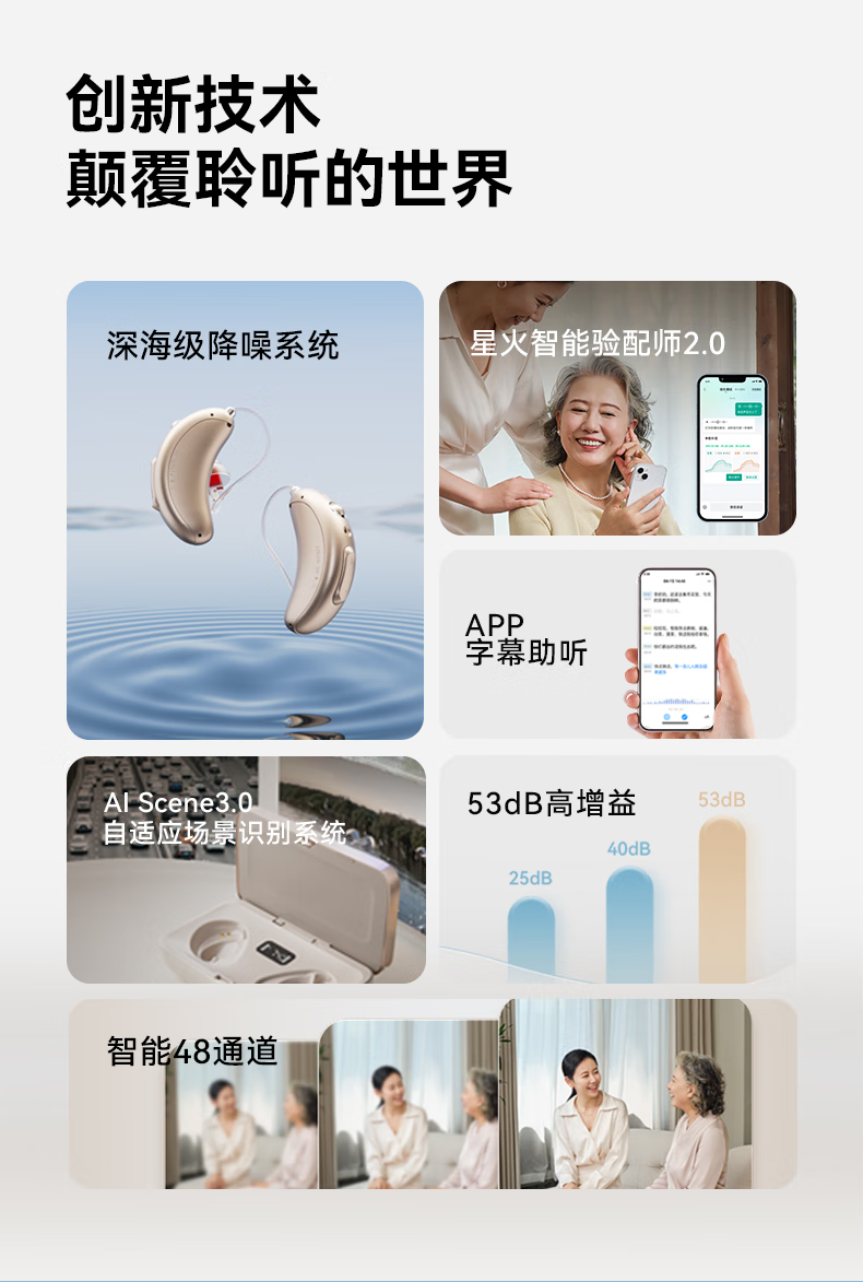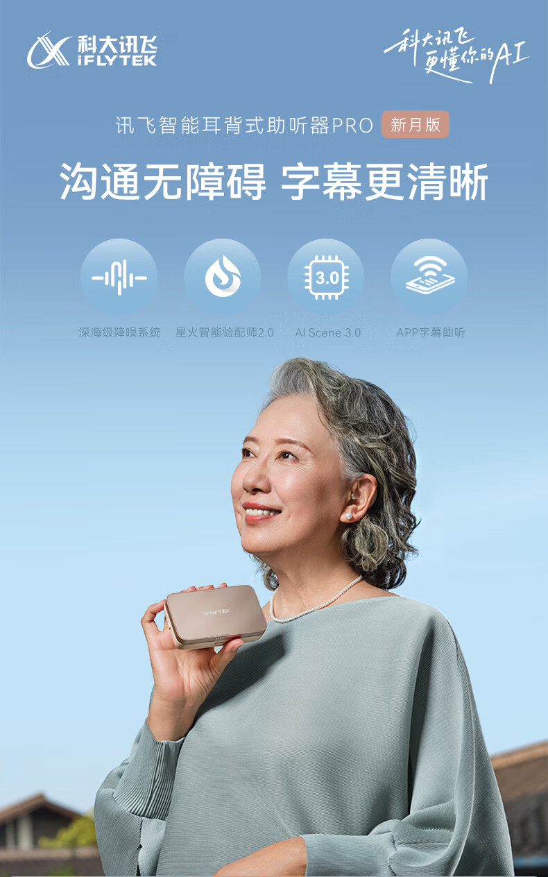 科大讯飞RIC耳背式助听器老年人重度听损专用耳聋耳背隐形降噪 新月版双耳
