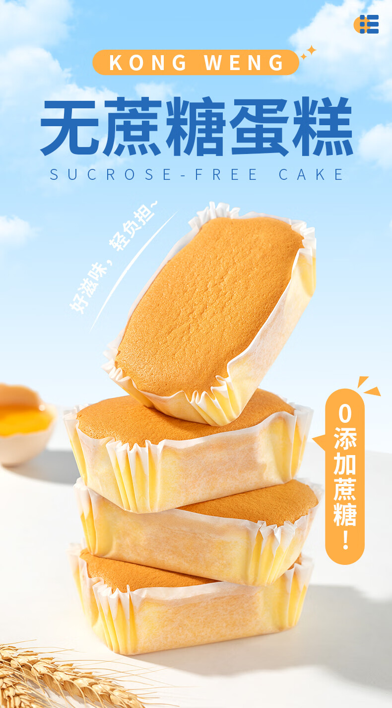 港荣蒸蛋糕无添加蔗糖吐司面包早餐整箱小零食老人孕妇营养健康美味 无蔗糖蛋糕2箱共840g