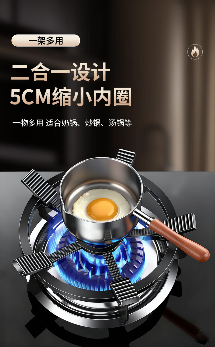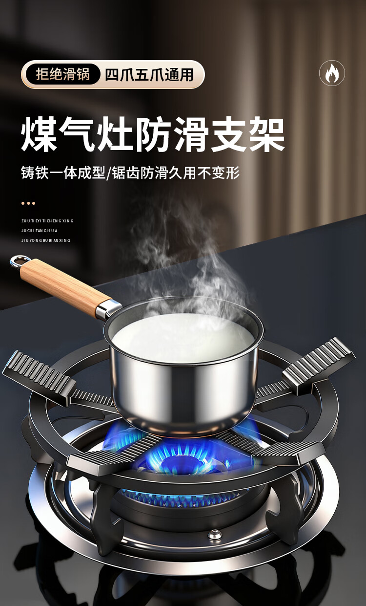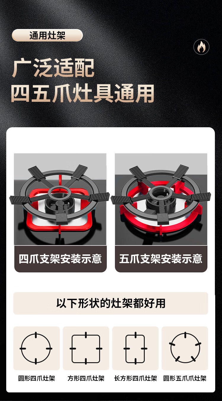 鑫英致(YINGZHI)燃气灶支架加厚铸钢煤气灶支架防滑架防风节能罩聚火罩适用美的华帝创维苏泊尔小米老板康佳等 【1只装】四五爪通用升级二合一|防滑耐高温|经典款