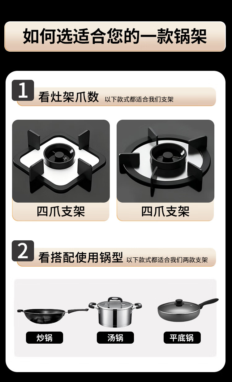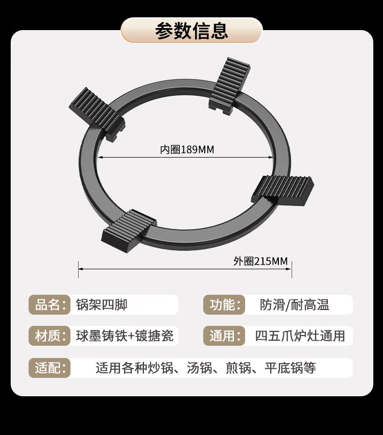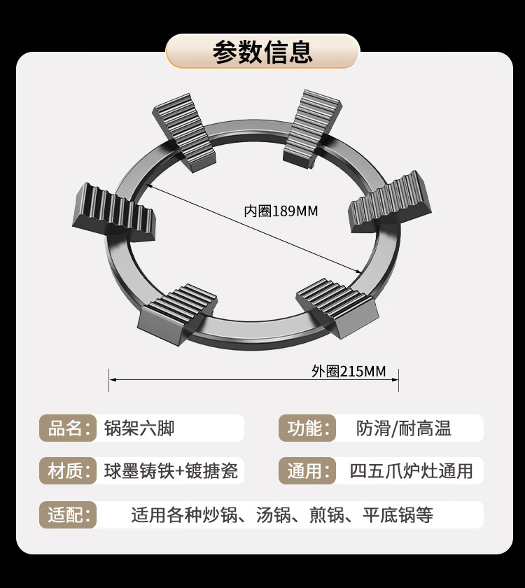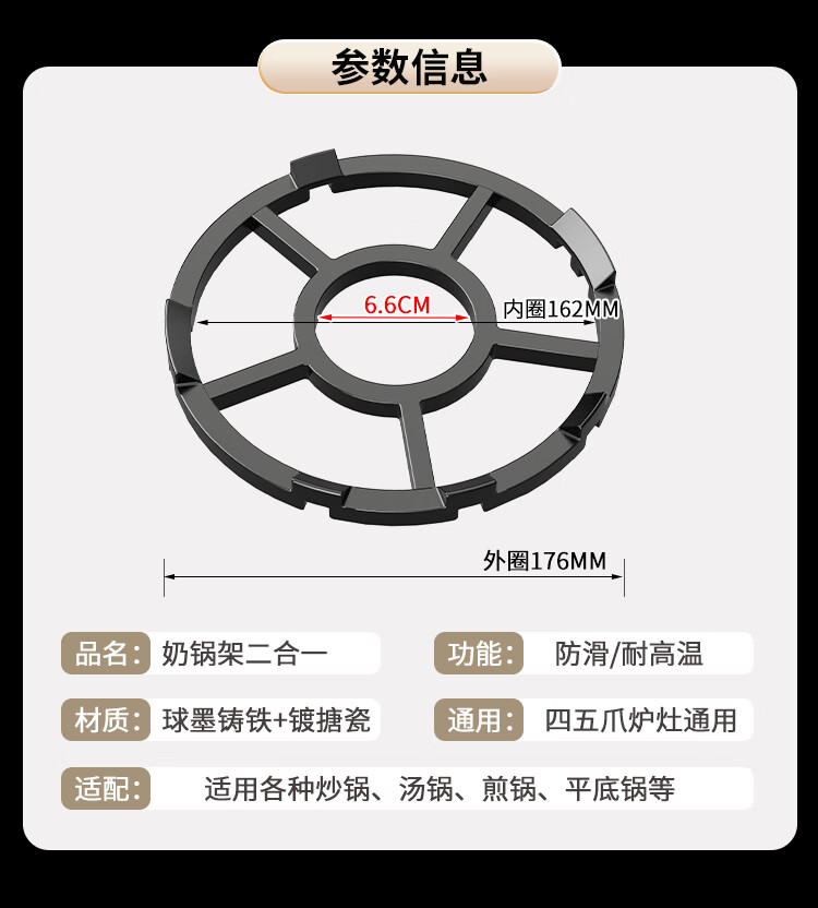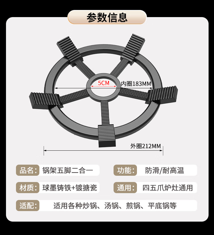 鑫英致(YINGZHI)燃气灶支架加厚铸钢煤气灶支架防滑架防风节能罩聚火罩适用美的华帝创维苏泊尔小米老板康佳等 【1只装】四五爪通用升级二合一|防滑耐高温|经典款
