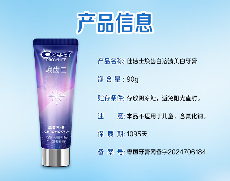佳洁士焕齿白高效溶渍美白牙膏去牙渍去烟渍清口90g热门商品京东自营