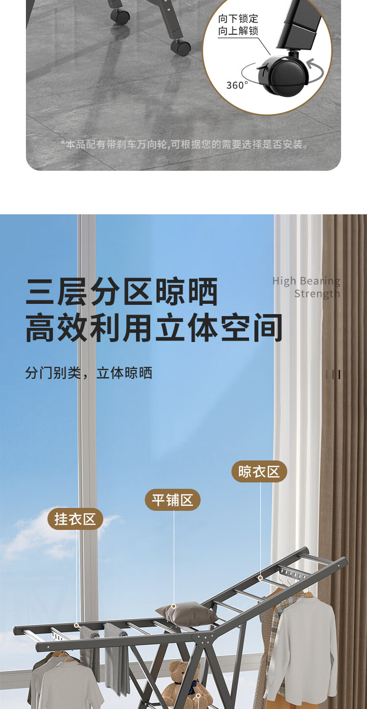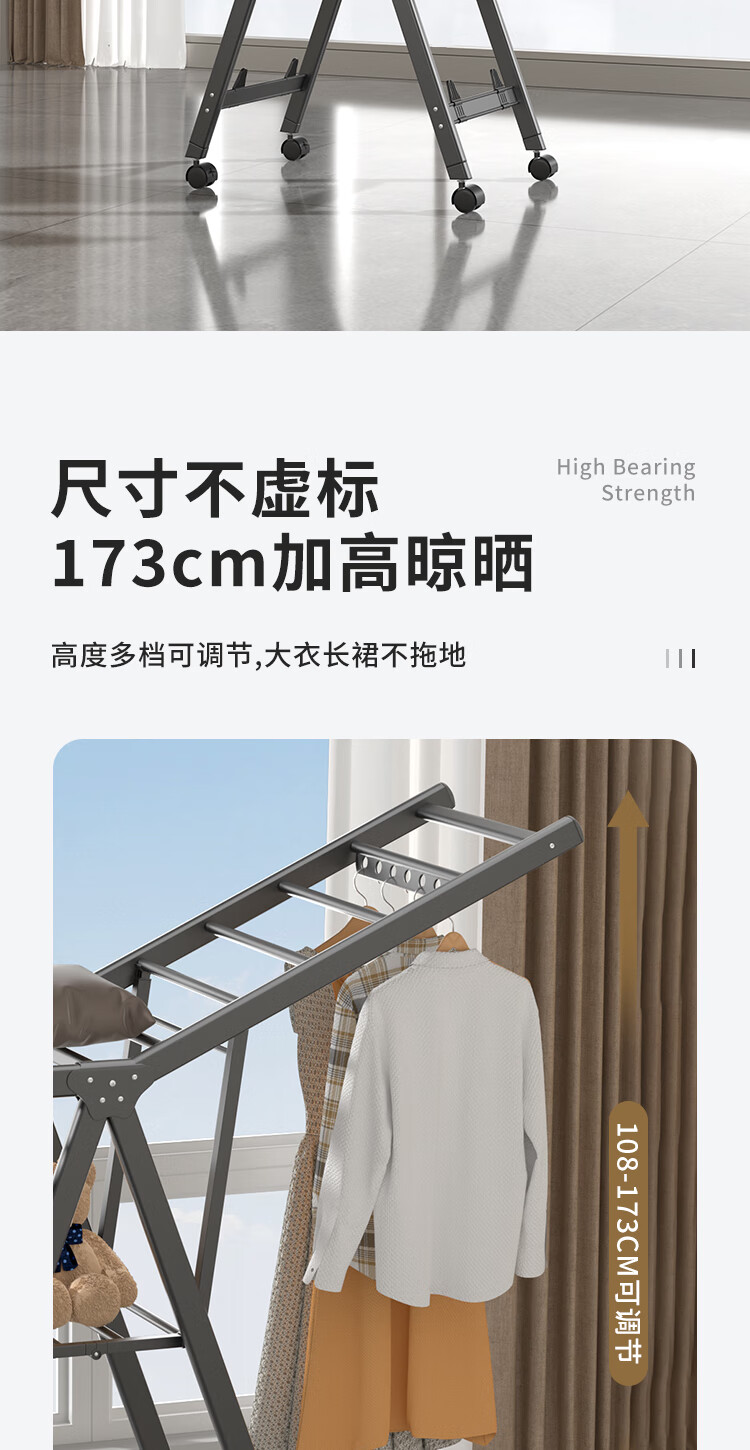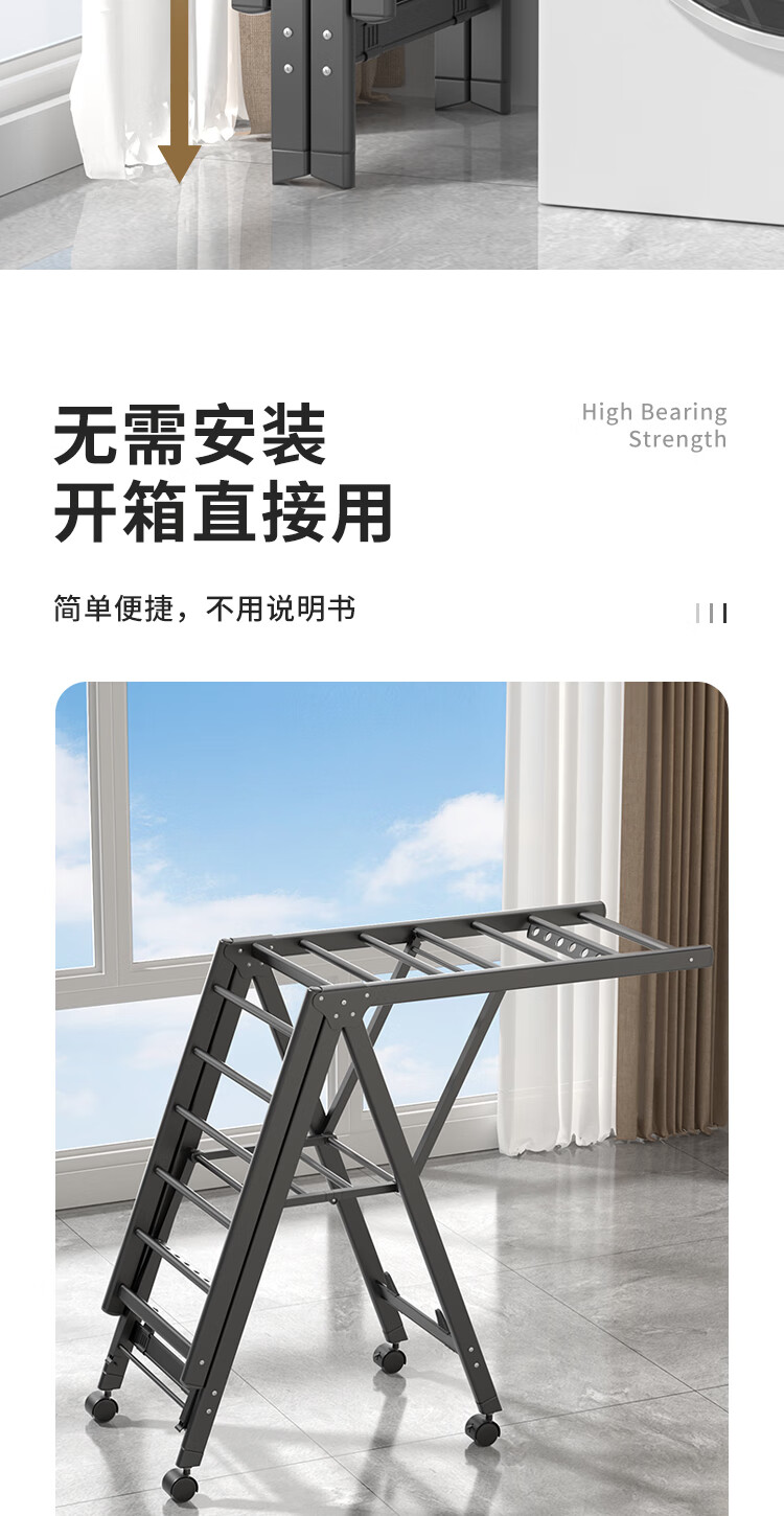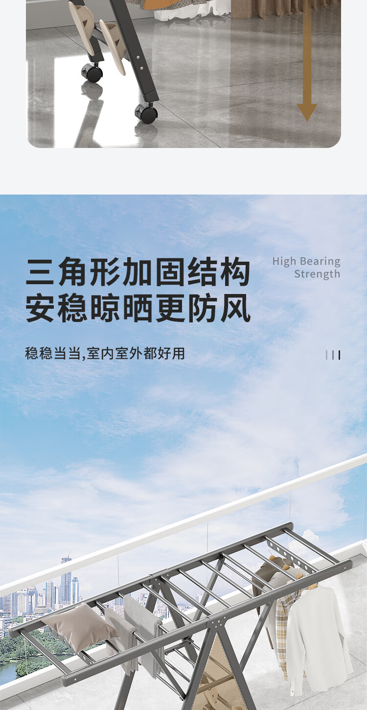 妙立晾衣架落地铝合金可折叠室内可移动家用阳台户外防风挂衣架晒被子