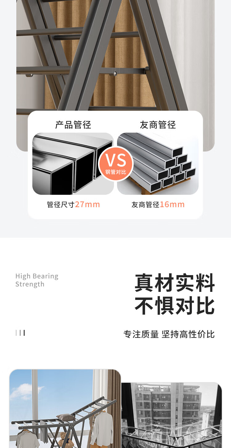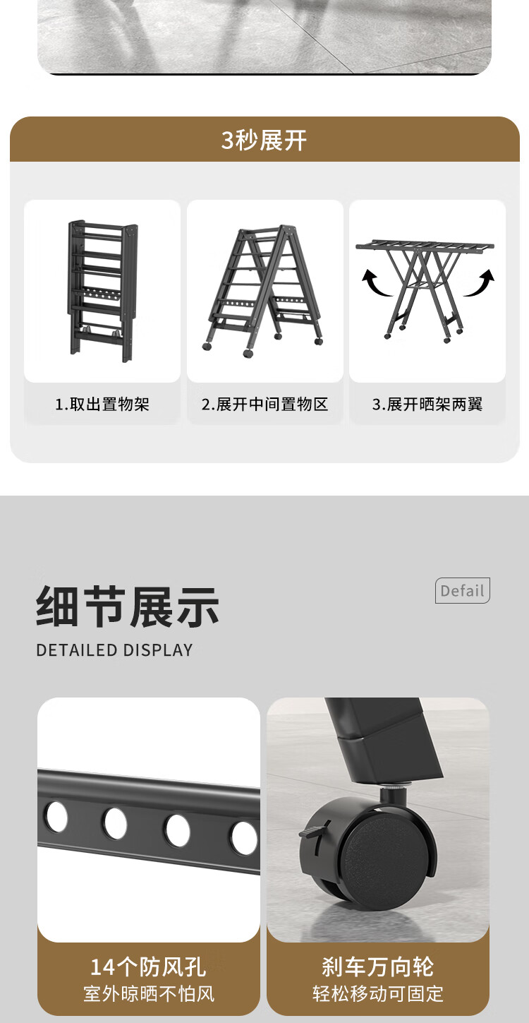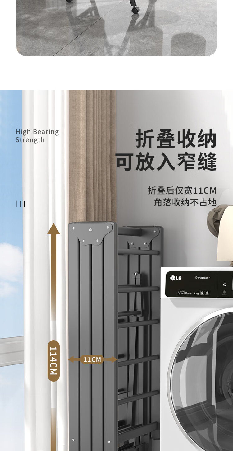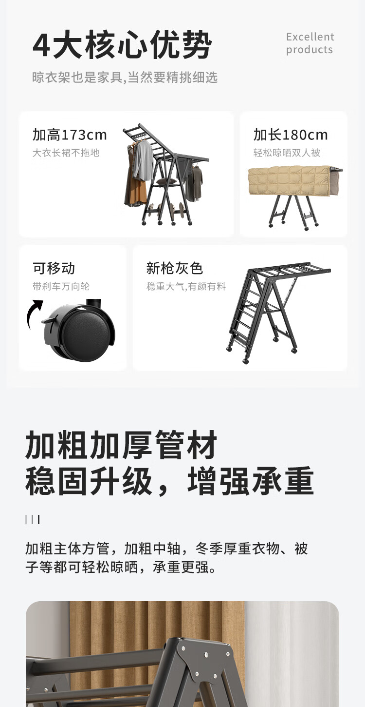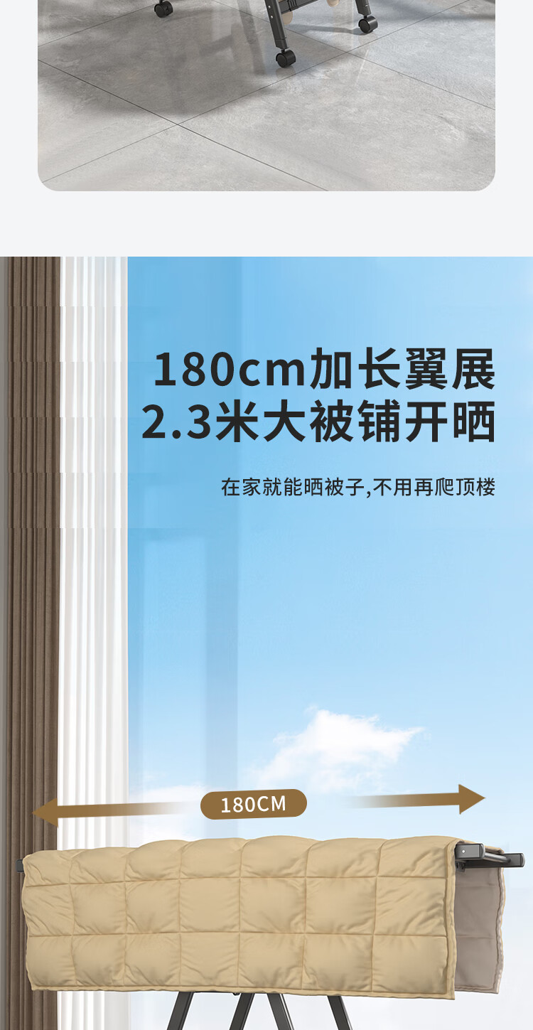 妙立晾衣架落地铝合金可折叠室内可移动家用阳台户外防风挂衣架晒被子