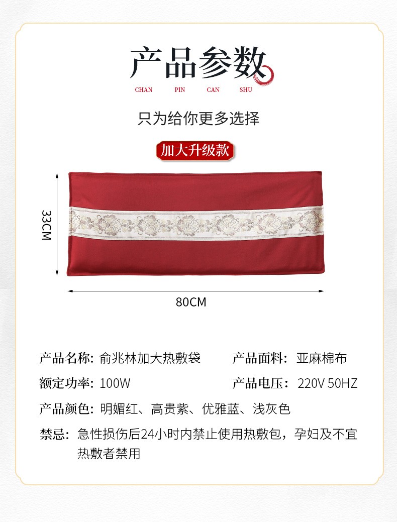 俞兆林电加热盐袋 加大盐包 粗盐海盐热敷包热敷袋 家用理疗袋 护腰膝 棉麻紫加长加宽80*33【药盐混合