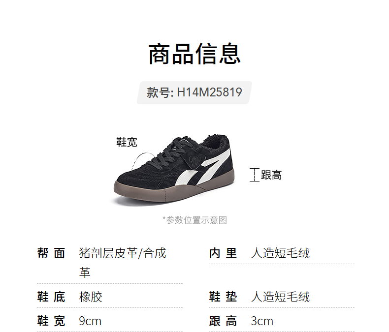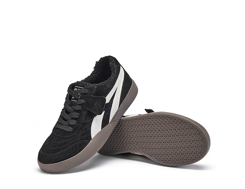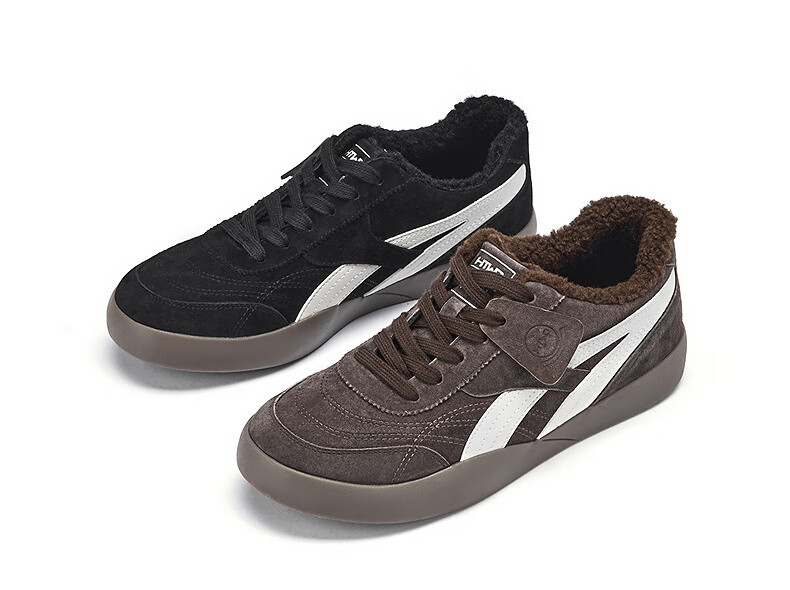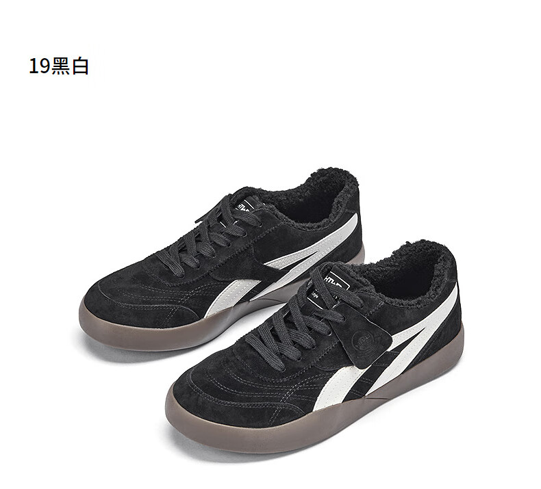 热风(Hotwind)男鞋2025年冬季新款男士加绒保暖休闲板鞋平底百搭运动男鞋 19黑白 38