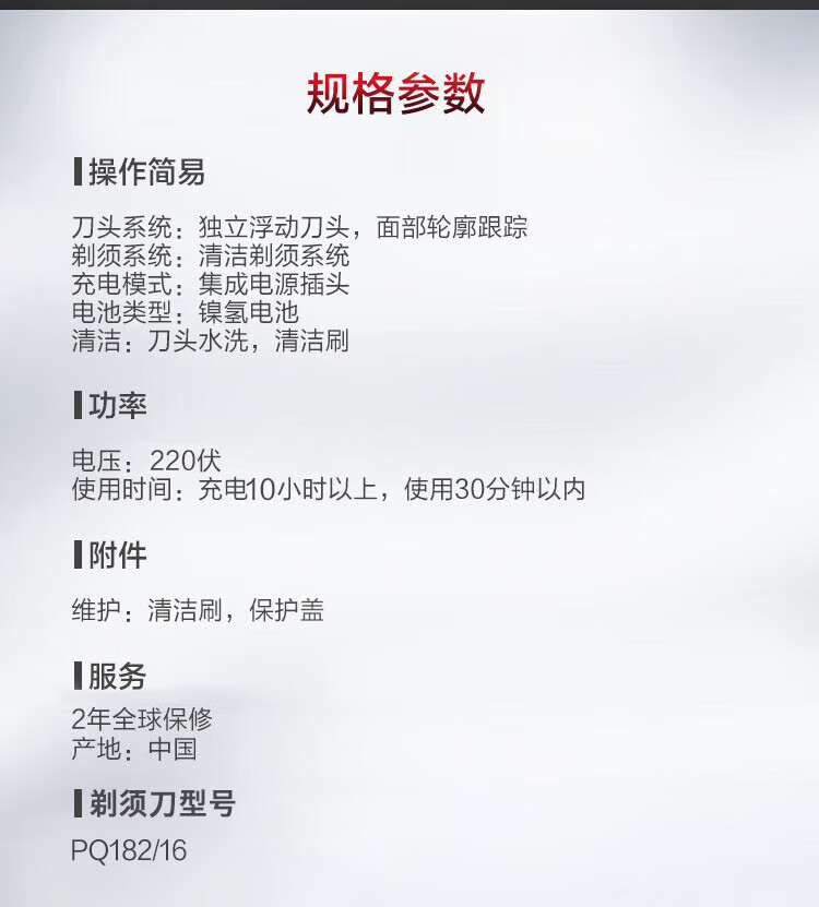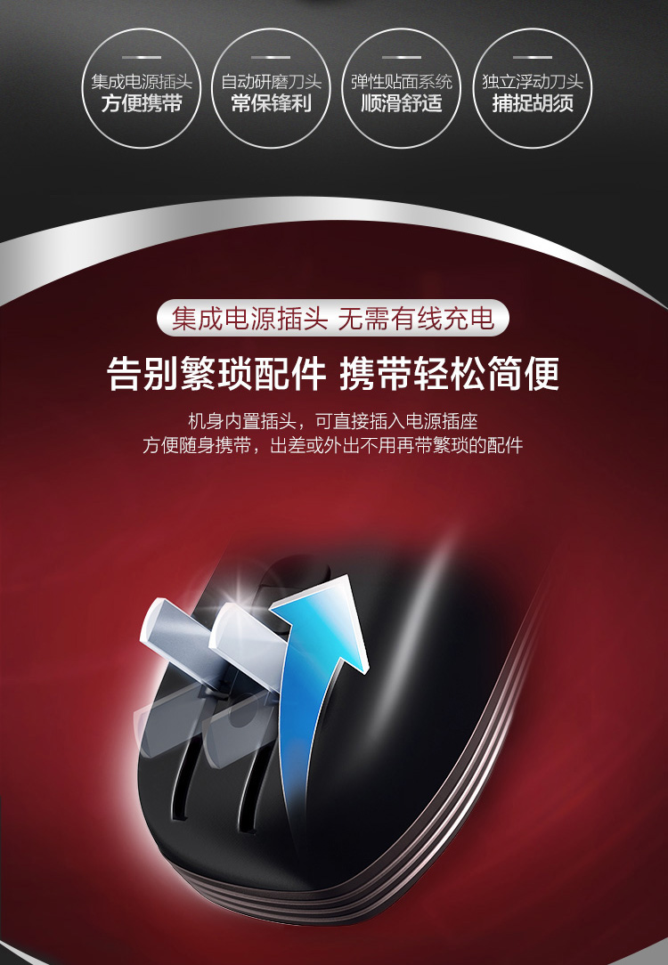 飞利浦(PHILIPS)电动剃须刀经典便携款 自动研磨刮胡刀胡须刀 送男友送老公 父亲礼物生日 出行必备