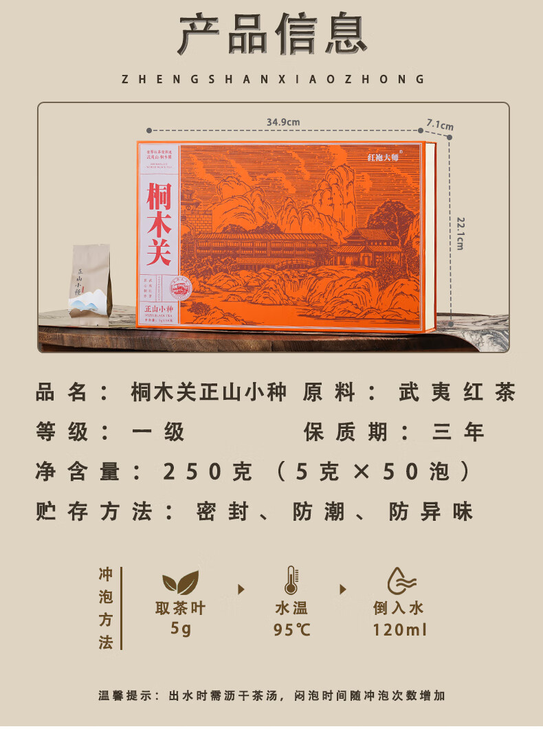 宸府梅家正山小种一级红茶叶(50袋*5克)武夷产区花香型节日茶礼盒装250g 正山小种红茶礼盒装250g