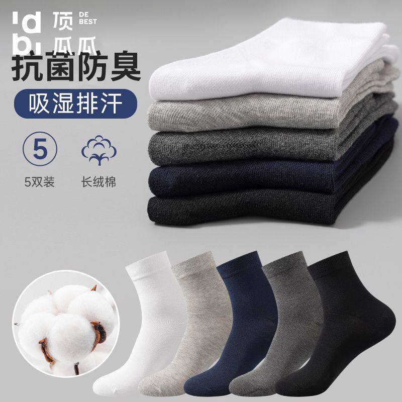 顶瓜瓜袜子男士中筒袜春夏季抗菌防臭运动袜简约百搭薄款商务男袜