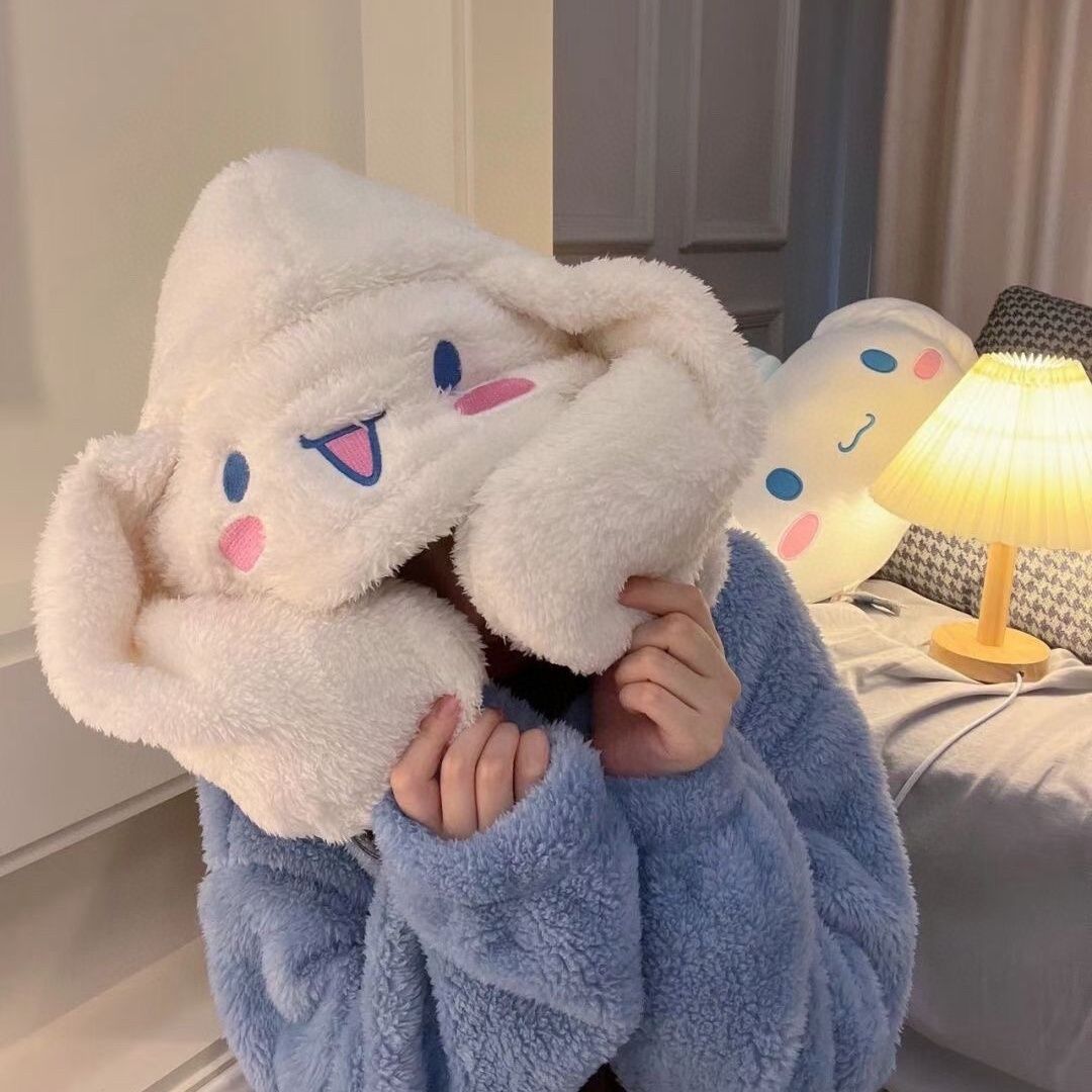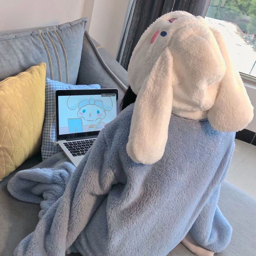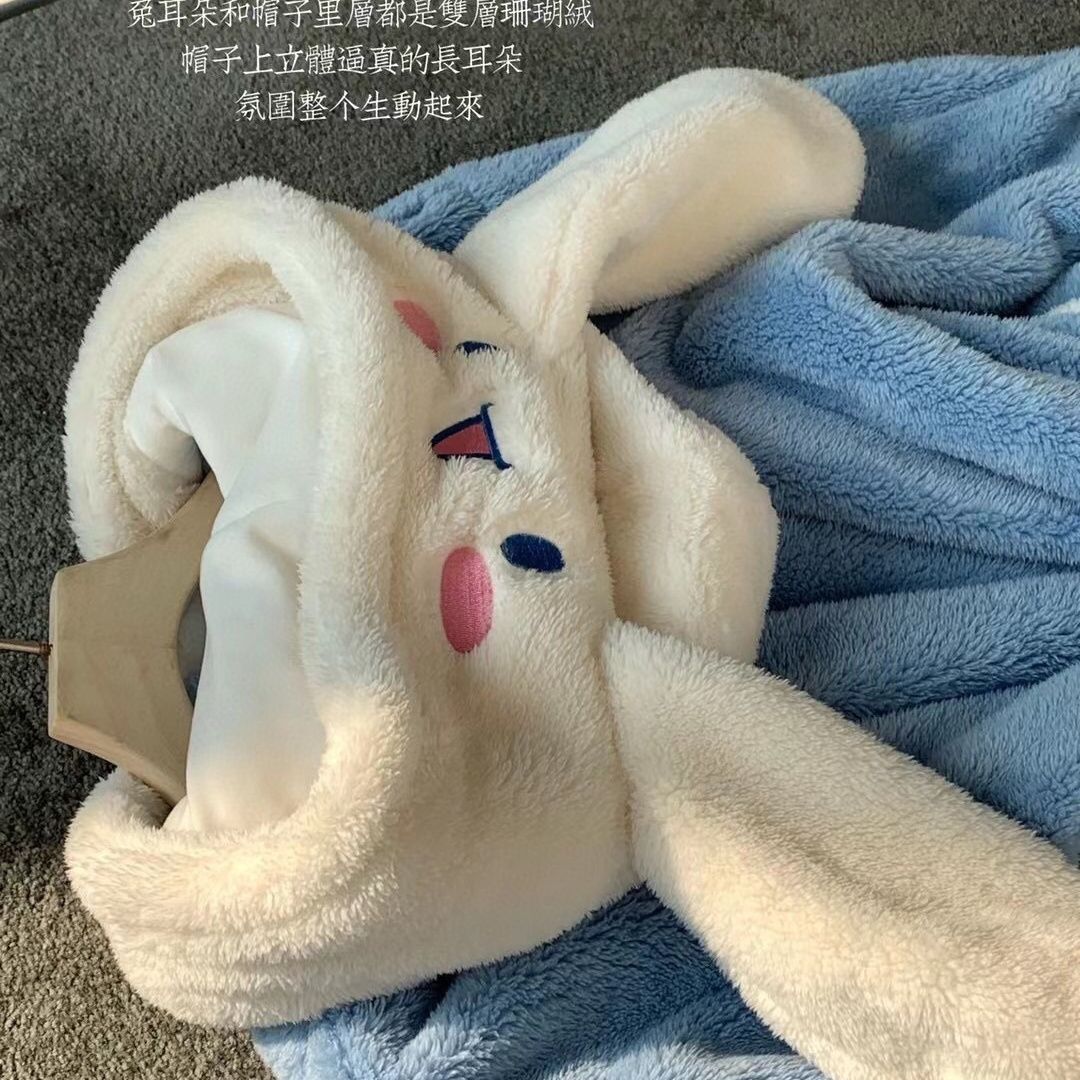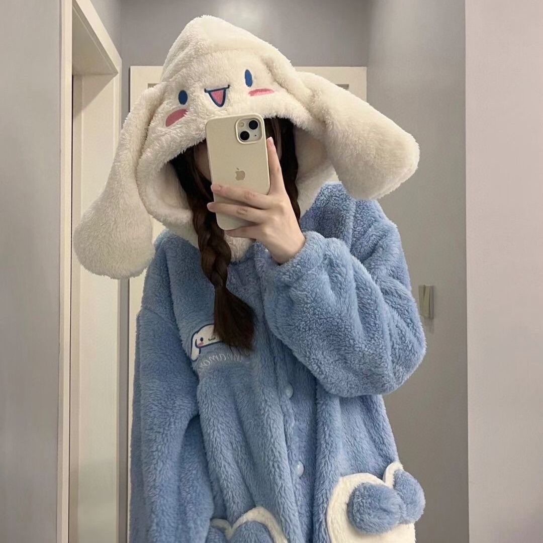 ins秋冬款甜美可爱大耳狗睡袍秋冬排扣V领珊瑚绒加绒加厚口袋睡裙【5天内发货】