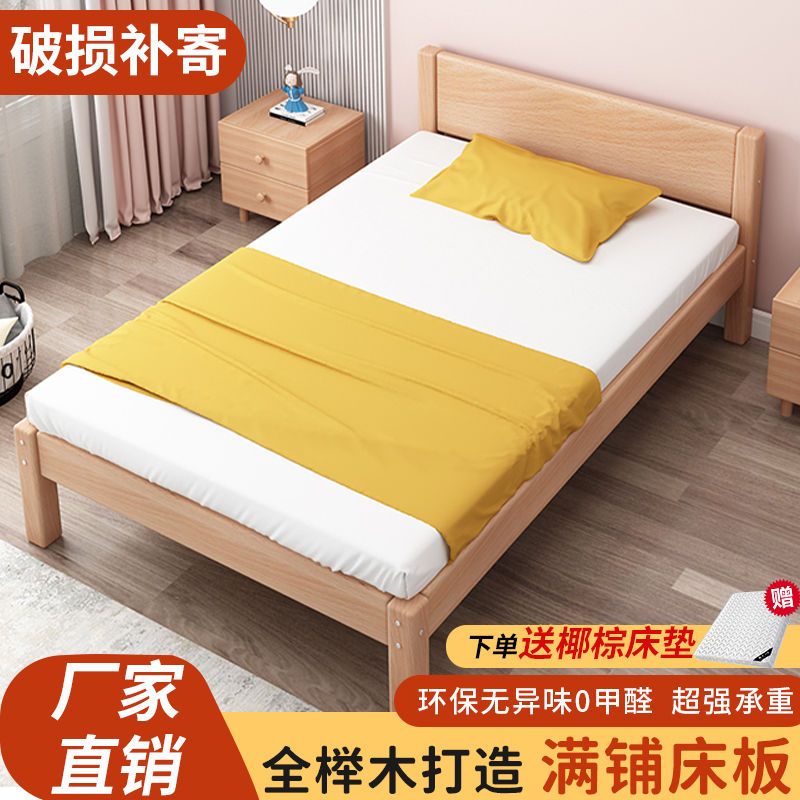 实木儿童床男孩单人床成人北欧小户型学生床女孩简约现代榉木拼接