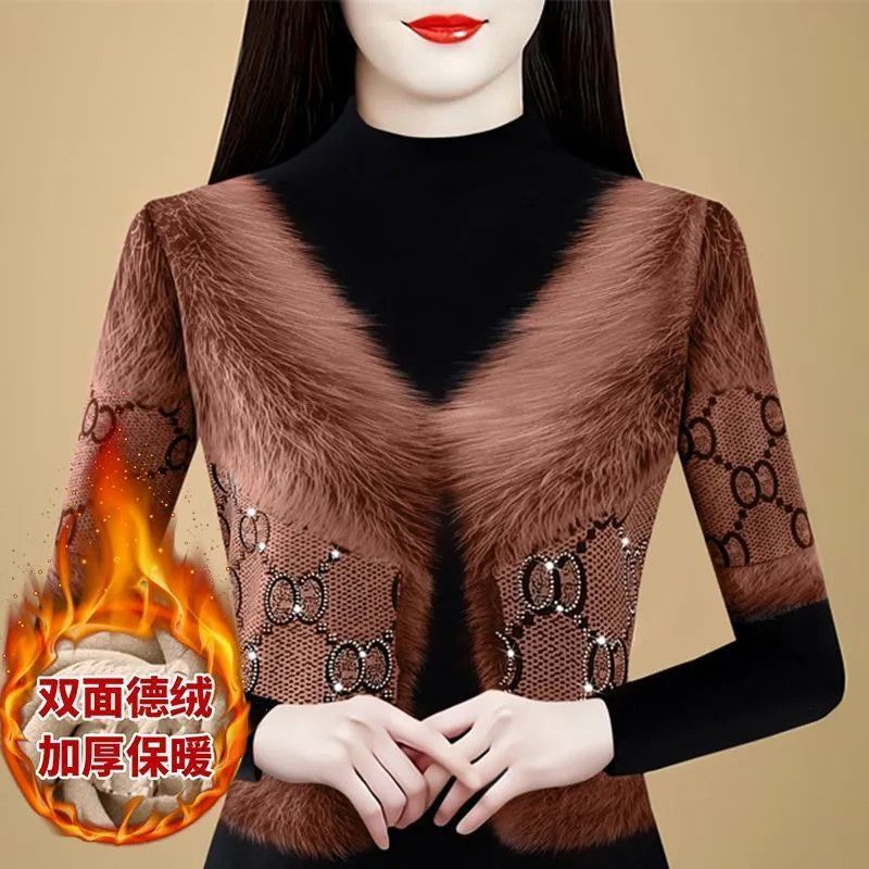 秋冬新款一体双面德绒半高领打底衫女长袖气质时尚百搭保暖上衣潮【7天内发货】