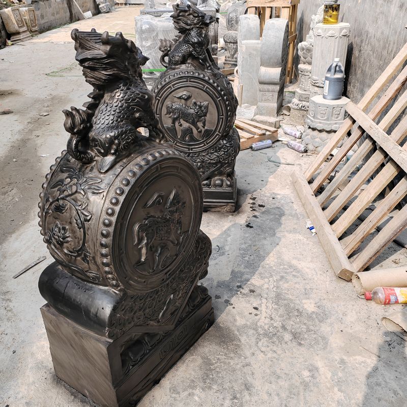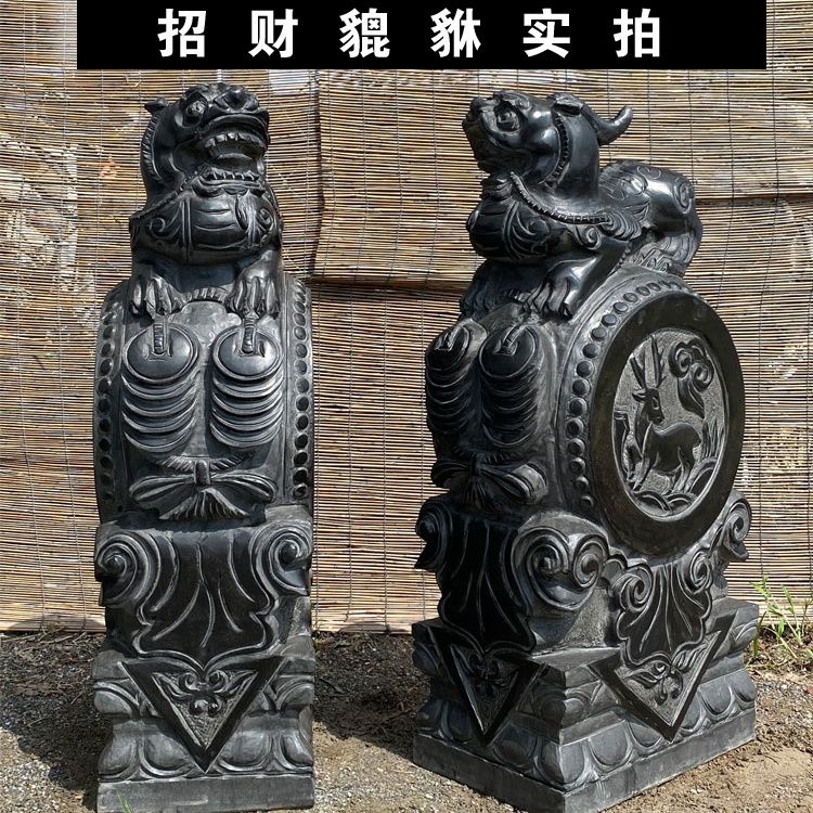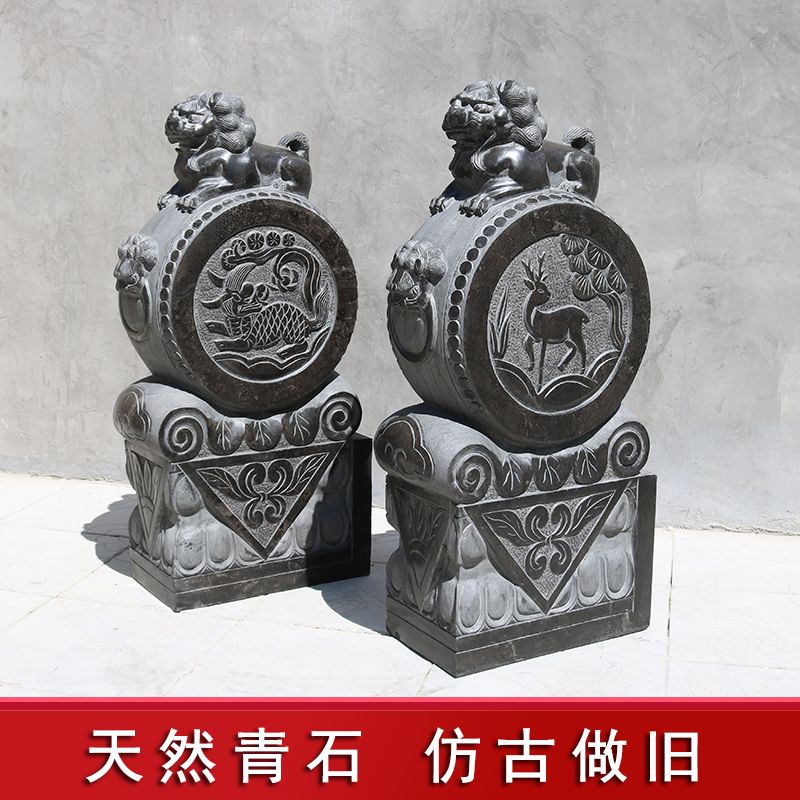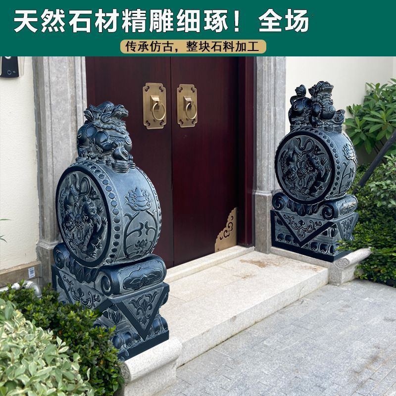 石雕门墩一对家用镇宅狮子麒麟貔貅青石仿古做旧门墩石石鼓抱鼓石