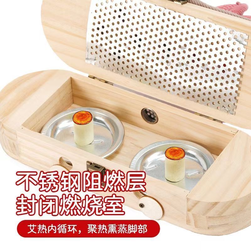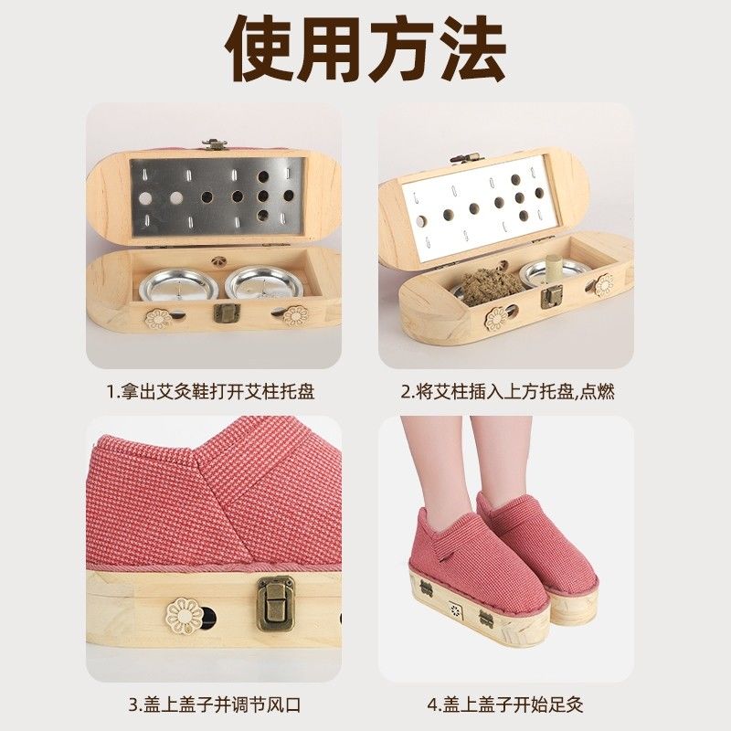 四季款艾灸鞋足底艾灸盒随身灸家用新型实木足灸靴灸脚部四季温灸