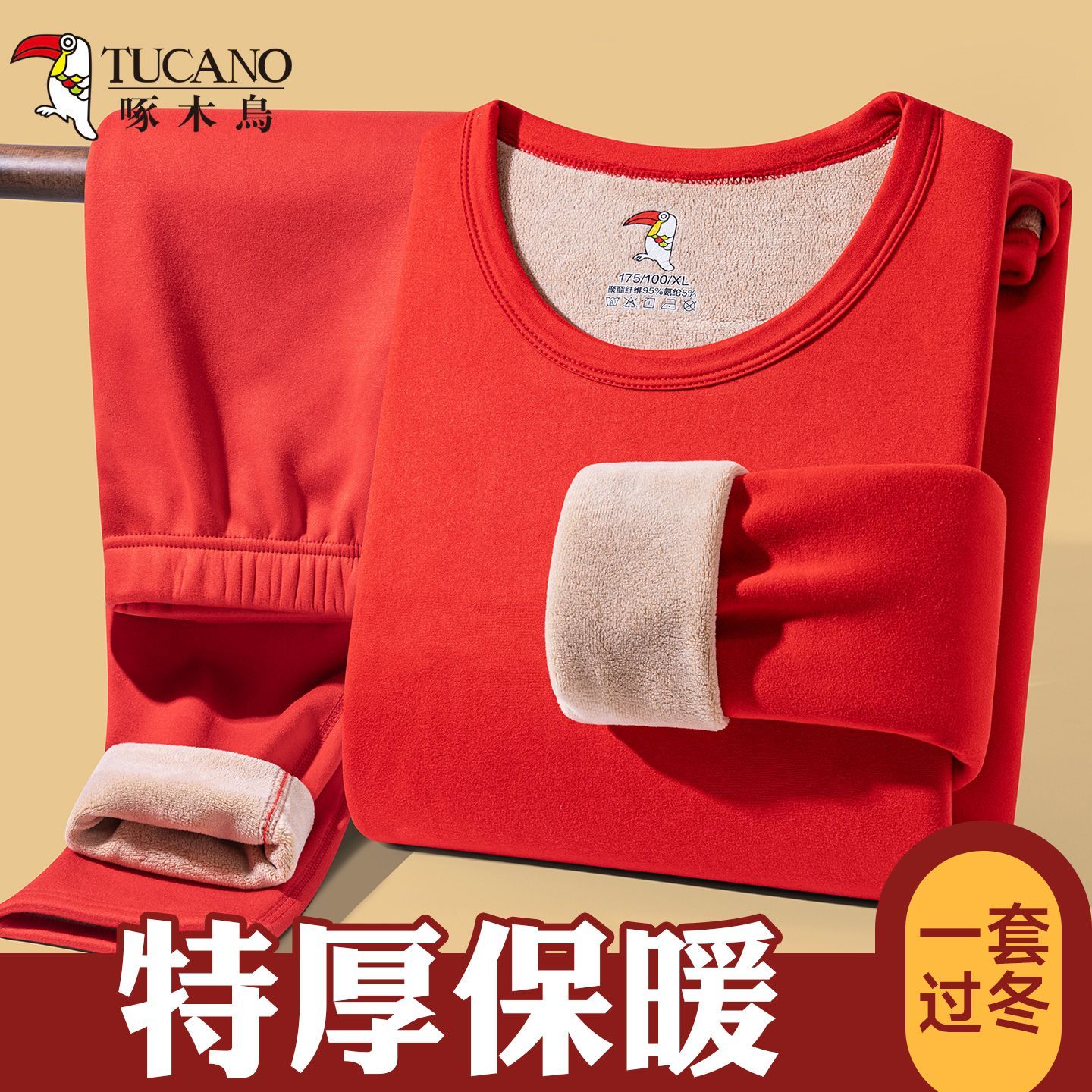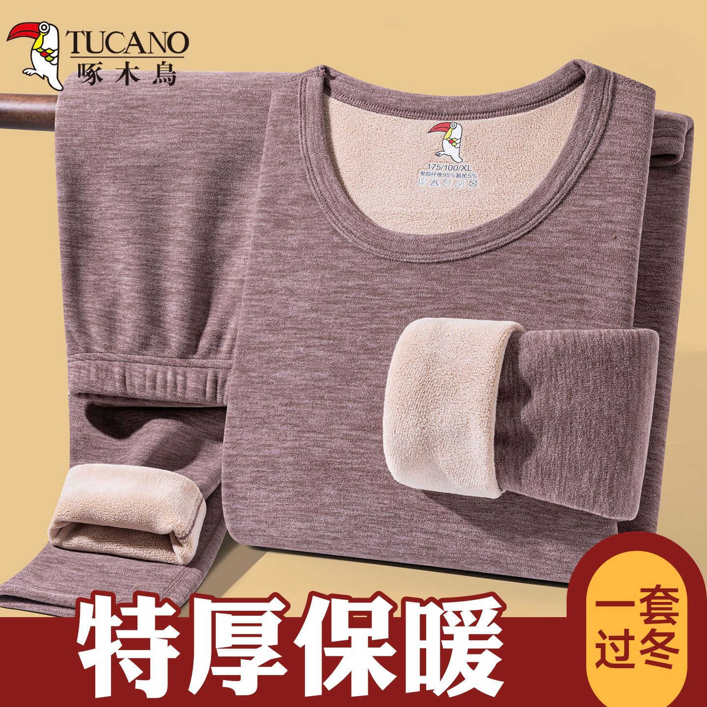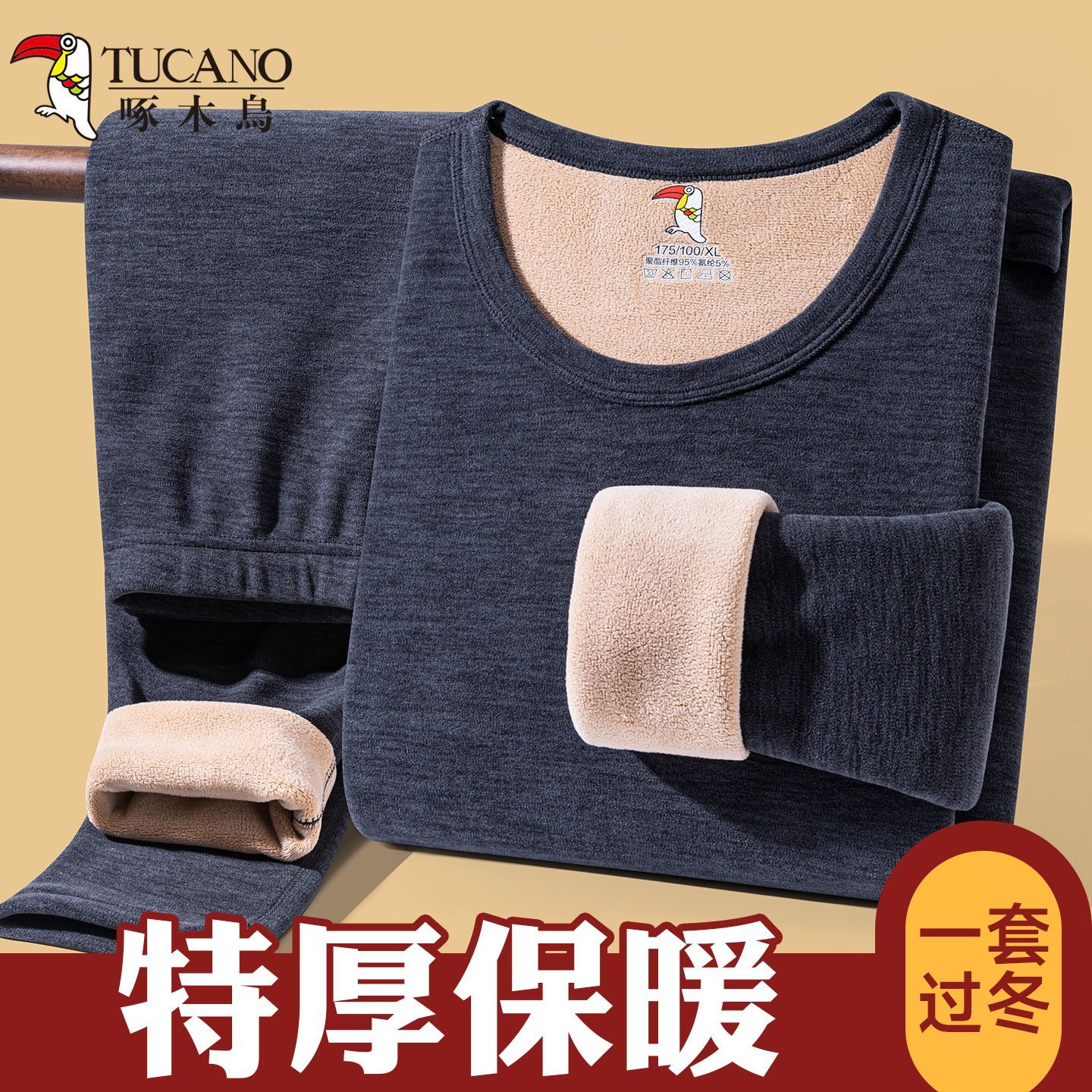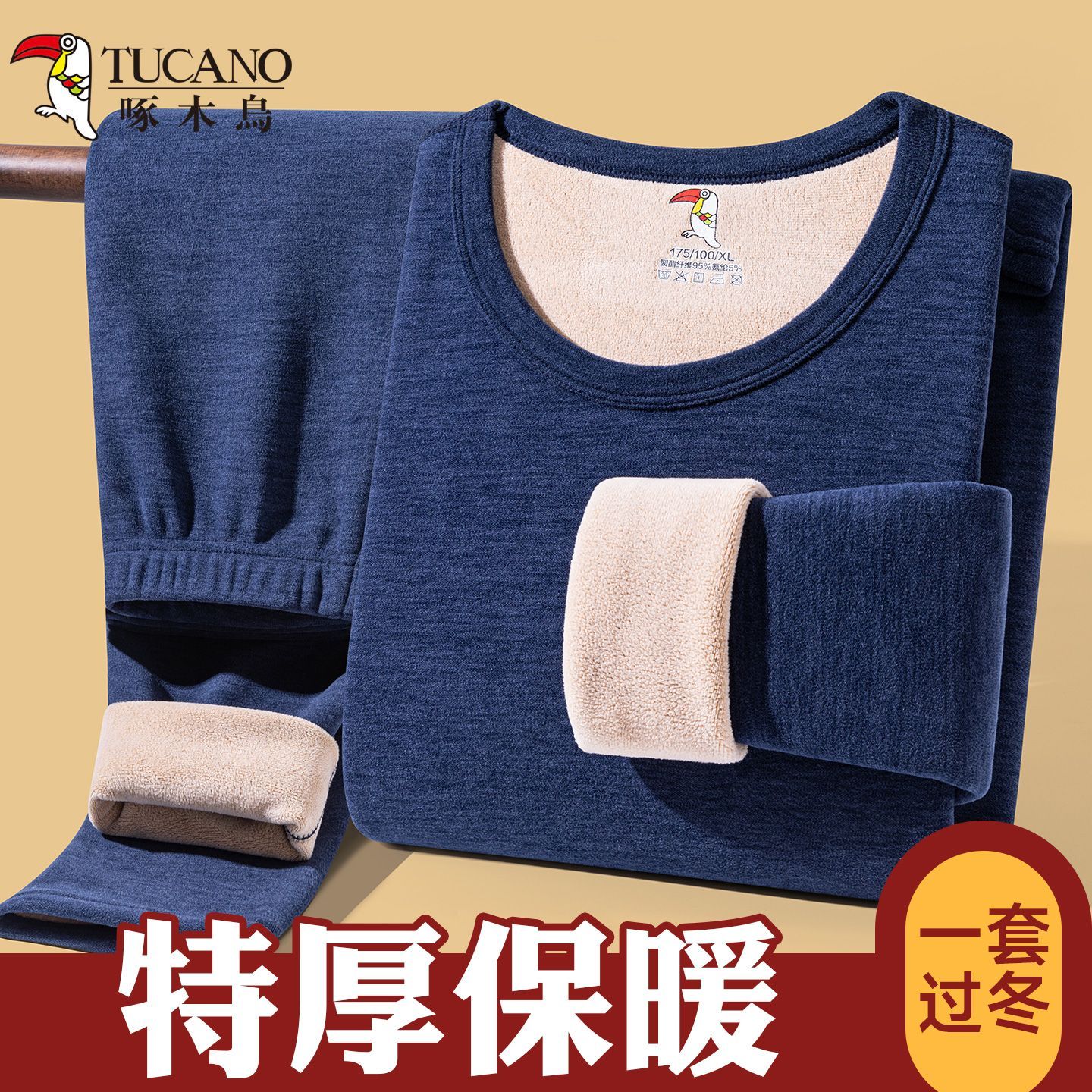啄木鸟男士加绒加厚保暖内衣休闲套装德绒加肥加大码秋衣秋裤打底