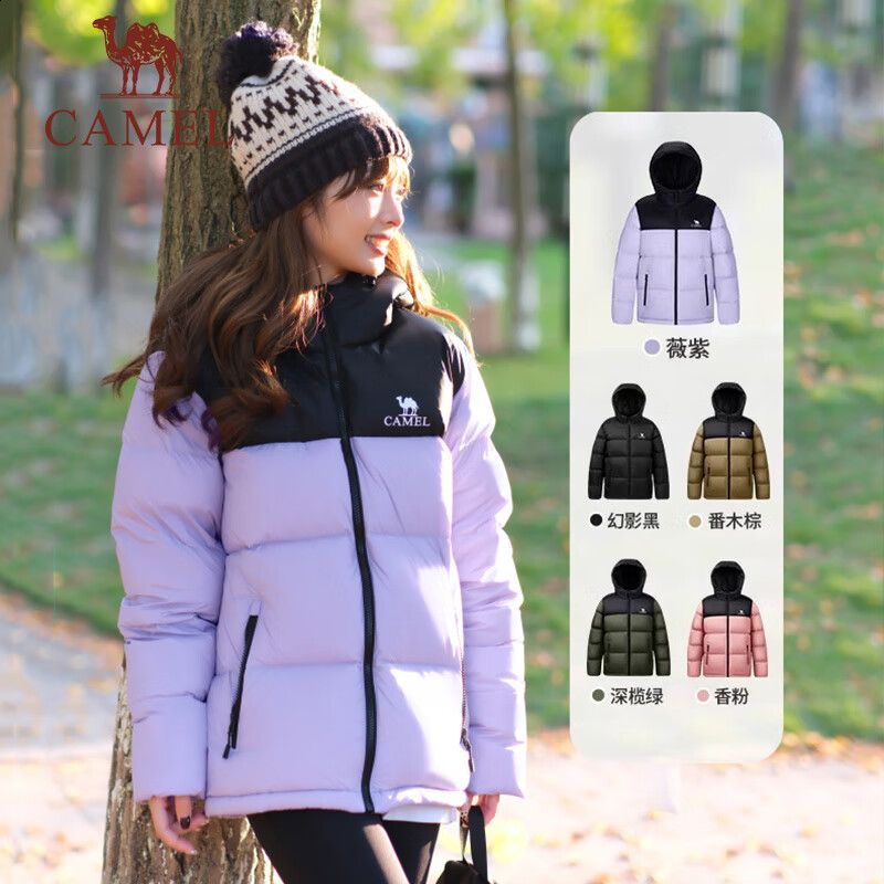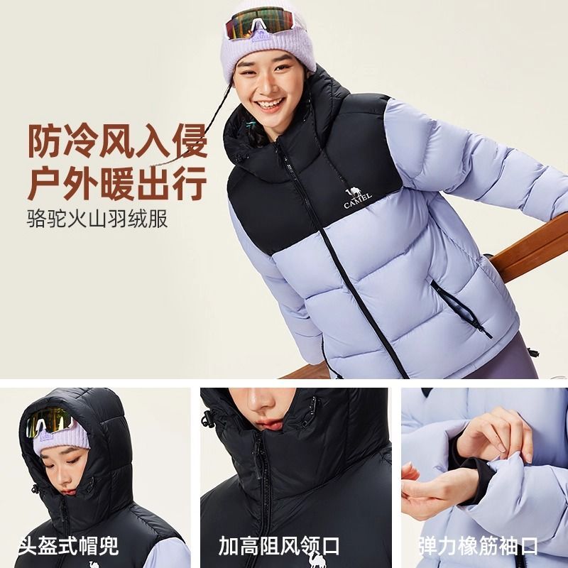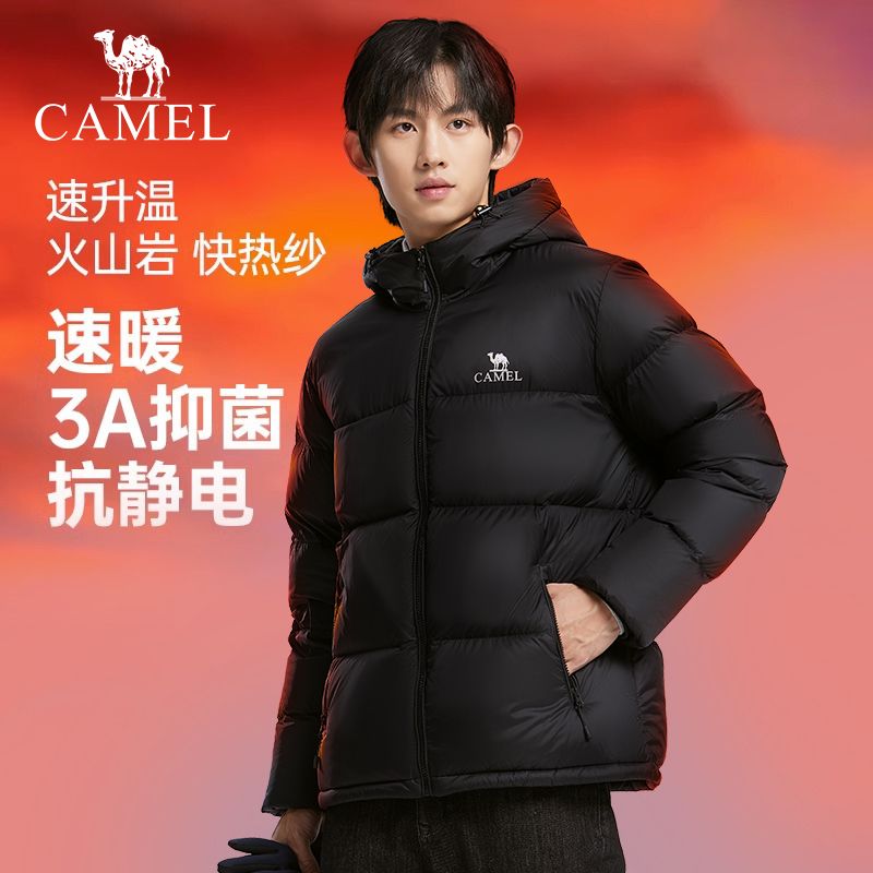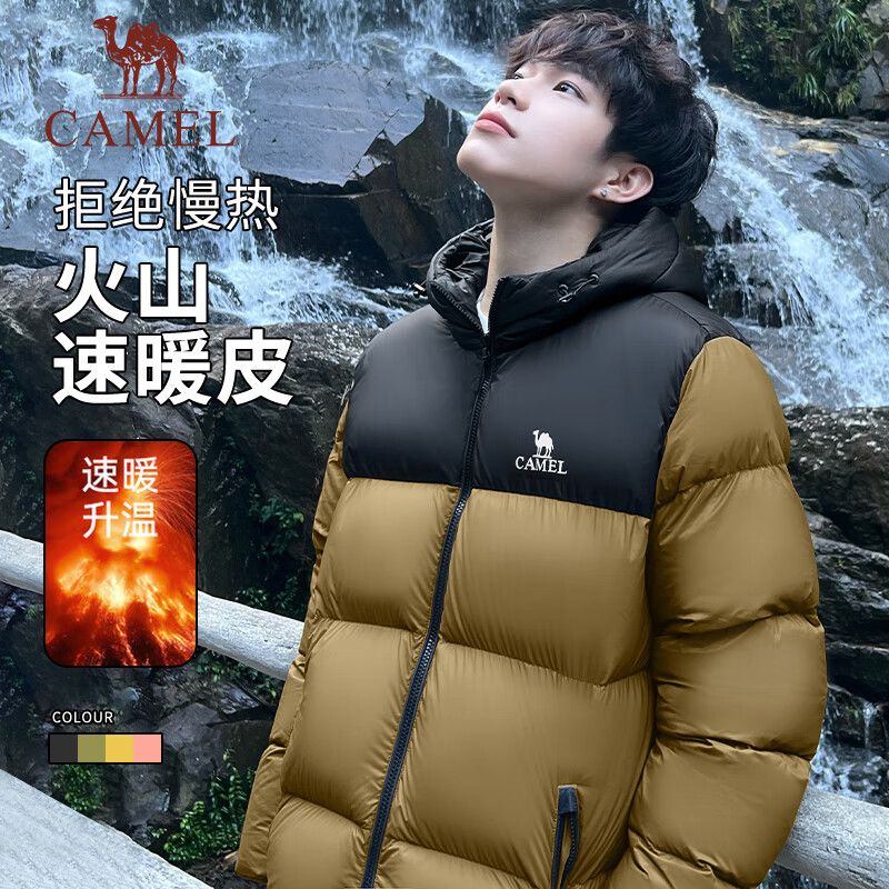 【骆驼火山】男装面包服男冬季连帽加厚保暖白鸭绒短款羽绒服外套