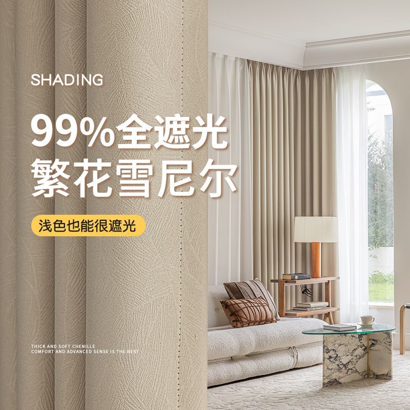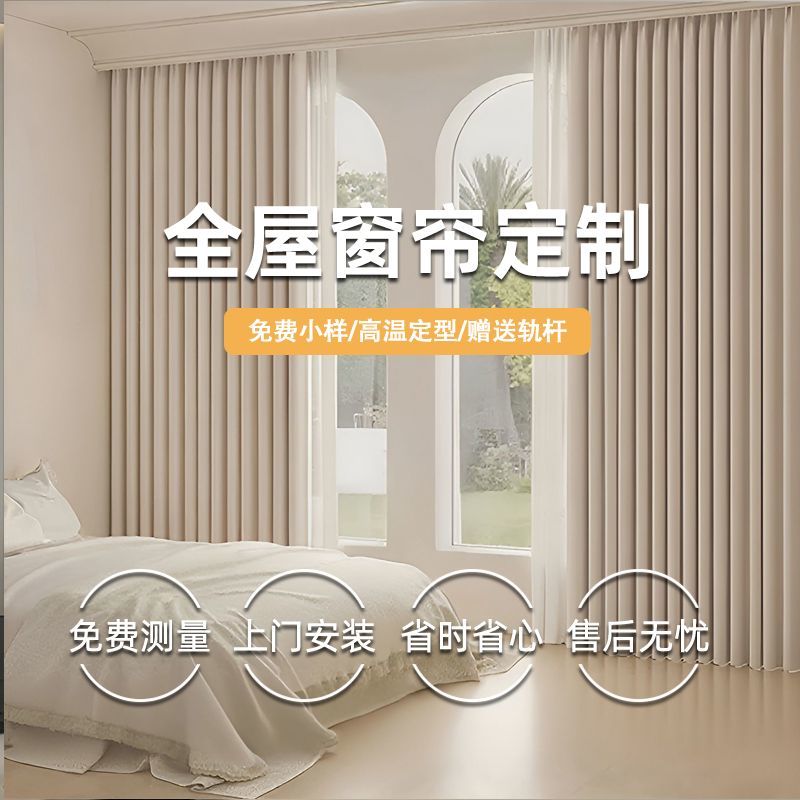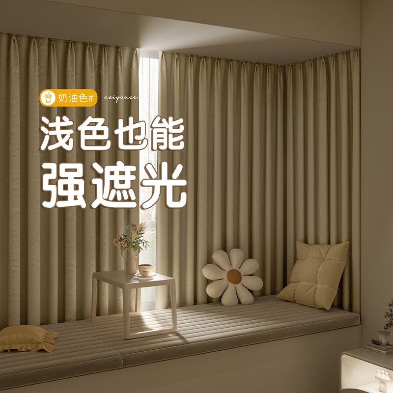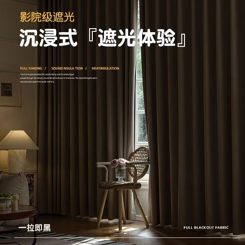 清仓特价送-高温定型-全遮光2025年新款卧室窗帘卧室遮光布无涂层